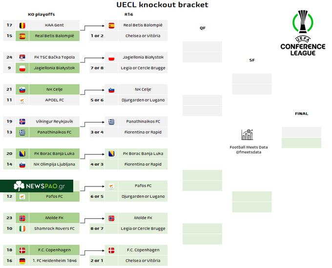 Μαζί με τους “πράσινους”, προκρίθηκαν ακόμη επτά ομάδες από τα playoffs, οι οποίες στην κλήρωση που θα πραγματοποιηθεί στη Νιόν, στο “Σπίτι του Ποδοσφαίρου”, θα μάθουν τους αντιπάλους τους. Στην επόμενη φάση, θα συναντήσουν τις οκτώ ομάδες που κατέκτησαν τις πρώτες θέσεις στη League Phase.