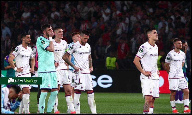 Η Φιορεντίνα στην OPAP Arena: Τερατσιάνο, Ντοντό, Μιλένκοβιτς, Κουάρτα, Μπιράγκι, Αρτούρ, Μαντραγκόρα, Μποναβεντούρα, Γκονζάλες, Κουαμέ, Μπελότι (Βιτσέντζο Ιταλιάνο)