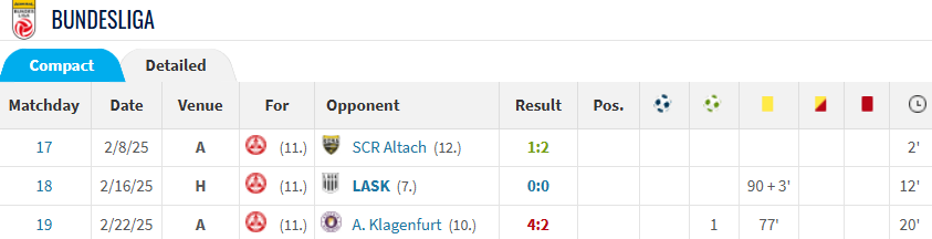 Μπήκε στη στατιστική ο Λάσλο Κλεϊνχέισλερ στην εκτός έδρας αναμέτρηση της Γκράζερ απέναντι στην Αούστρια Κλάγκενφουρτ.