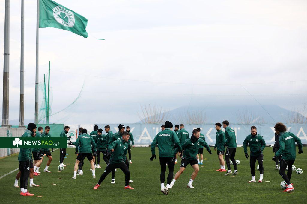 Οι Πράσινοι ξεκίνησαν με προθέρμανση, συνέχισαν με τακτική και ολοκλήρωσαν με εξάσκηση στις στατικές φάσεις. Ατομικό πρόγραμμα ακολούθησαν οι Μπακασέτας, Πάλμερ – Μπράουν, ενώ θεραπεία έκανε ο Κώτσιρας.