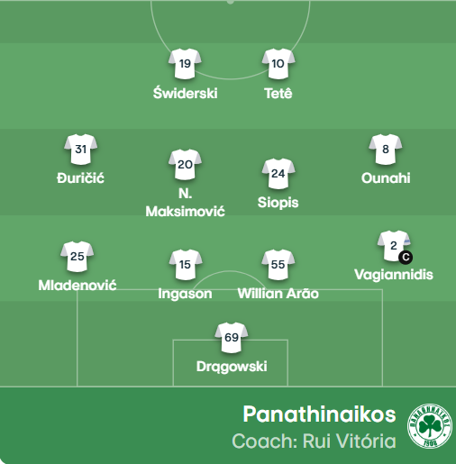 Δείτε την ενδεκάδα του Παναθηναϊκού με τη Φιορεντίνα για τους «16» του Conference League.