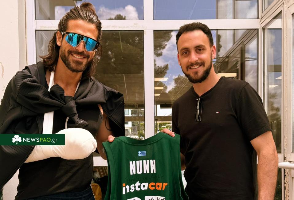 Ο Άρης Μουγκοπέτρος δέχθηκε ένα δώρο άκρως Παναθηναϊκό. Τη φανέλα του Κέντρικ Ναν με τις υπογραφές των παικτών.