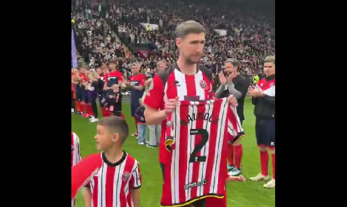 Σε φιλική αναμέτρηση ο αρχηγός της Σέφιλντ Γιουνάιτεντ αποσύρθηκε από την ενεργό δράση και αποθεώθηκε κρατώντας μια φανέλα του Τζορτζ Μπάλντοκ.