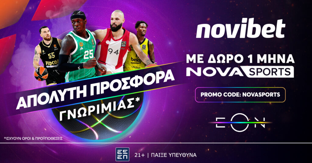 Mε την Novibet δεν θα χρειαστεί να βάλεις κελεμπία αφού το Final 4 έρχεται στο σπίτι σου με την σούπερ προσφορά* χωρίς κατάθεση με δώρο 1 μήνα ΝOVASPORTS!