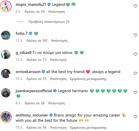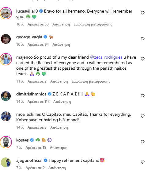 Η δημοσίευσή του προκάλεσε αμέτρητα μηνύματα αγάπης και αποχαιρετισμού. Πρώην και νυν συμπαίκτες του έσπευσαν να τιμήσουν τον Πορτογάλο με λόγια γεμάτα συναίσθημα, ευχαριστώντας τον για την προσφορά του τόσο εντός αγωνιστικού χώρου όσο και έξω από αυτόν.