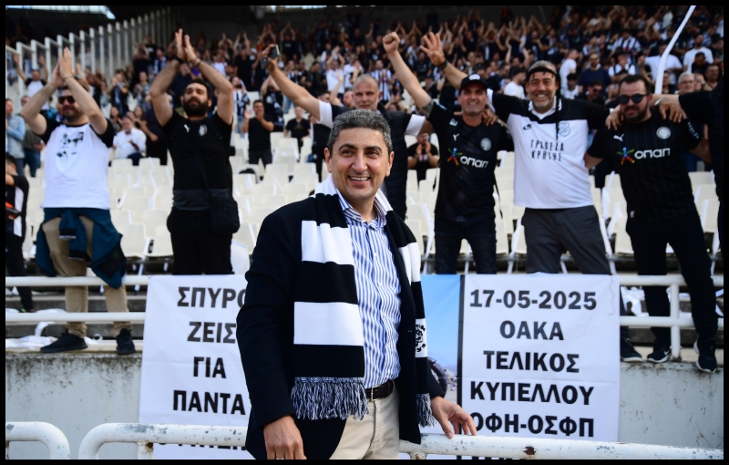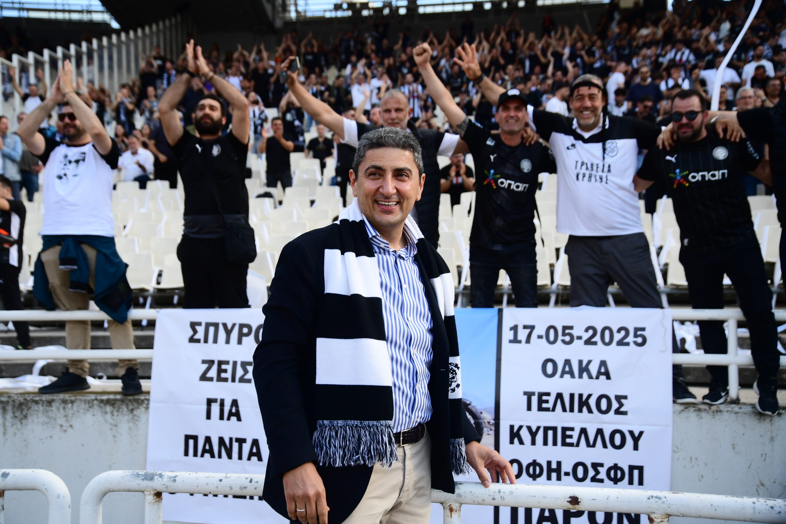 Στο ΟΑΚΑ με «ασπρόμαυρο» κασκόλ ο Λευτέρης Αυγενάκης