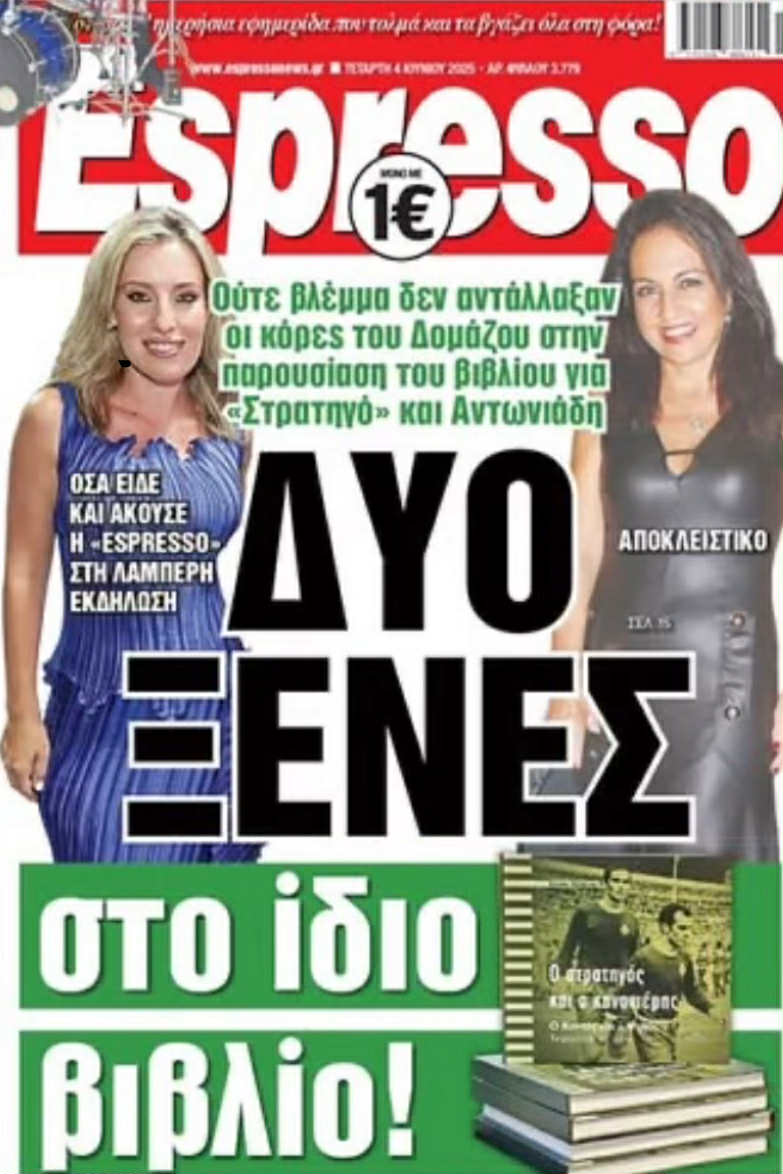 Η εφημερίδα Espresso έχει ως κεντρικό θέμα στο σημερινό της φύλλο (4/6) τις κόρες του Μίμη Δομάζου.
