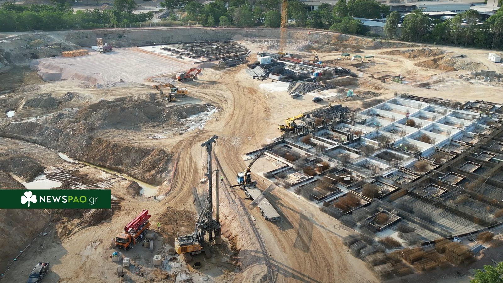 Η περιοχή γύρω από το εργοτάξιο «ζει» στους ρυθμούς του μεγάλου έργου, καθώς τα βαριά μηχανήματα δουλεύουν αδιάκοπα, οι πρώτες βάσεις έχουν ήδη τεθεί και οι προετοιμασίες για την τοποθέτηση του πρώτου γερανού στη βορειοανατολική πλευρά βρίσκονται σε πλήρη εξέλιξη.