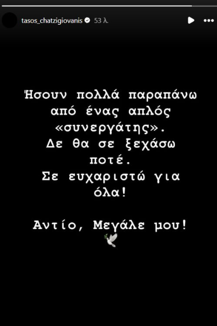Συντετριμμένος ο Χατζηγιοβάνης: «Ήσουν παραπάνω από συνεργάτης - Δεν θα σε ξεχάσω ποτέ»
