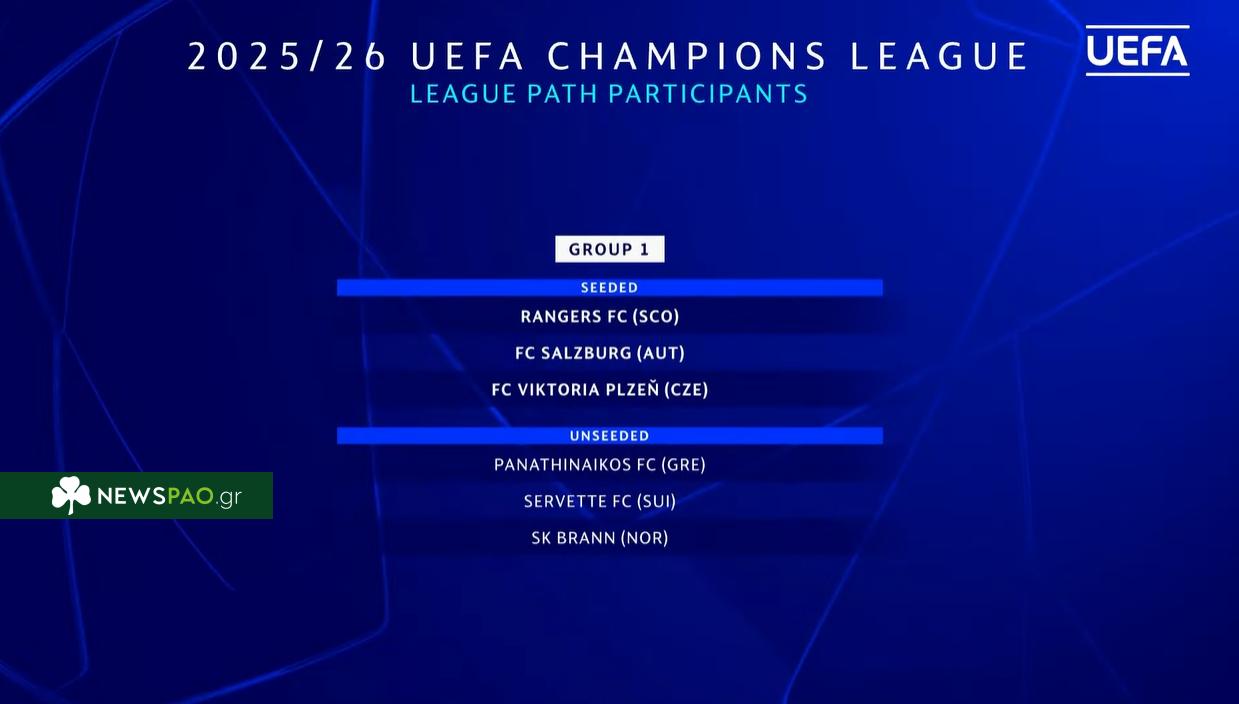 Ο Παναθηναϊκός θα έρθει αντιμέτωπος με τη Ρέιντζερς στον 2ο προκριματικό γύρο του Champions League.
