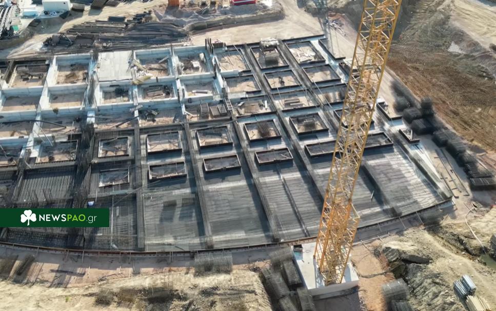 Σύμφωνα με πλάνα drone που κυκλοφόρησαν μέσω του καναλιού «Prasinos Huk», η περιοχή της δυτικής εξέδρας έχει μπει δυναμικά στο επίκεντρο των κατασκευών, επιβεβαιώνοντας τη στροφή του εργοταξίου προς ένα από τα πιο κρίσιμα τμήματα του έργου.