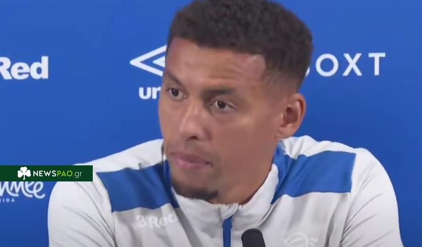 Ο Τζέιμς Ταβερνιέ εκπροσώπησε τους ποδοσφαιριστές της Ρέιντζερς στη Συνέντευξη Τύπου και έκανε δήλωση νίκης επί του Παναθηναϊκού.