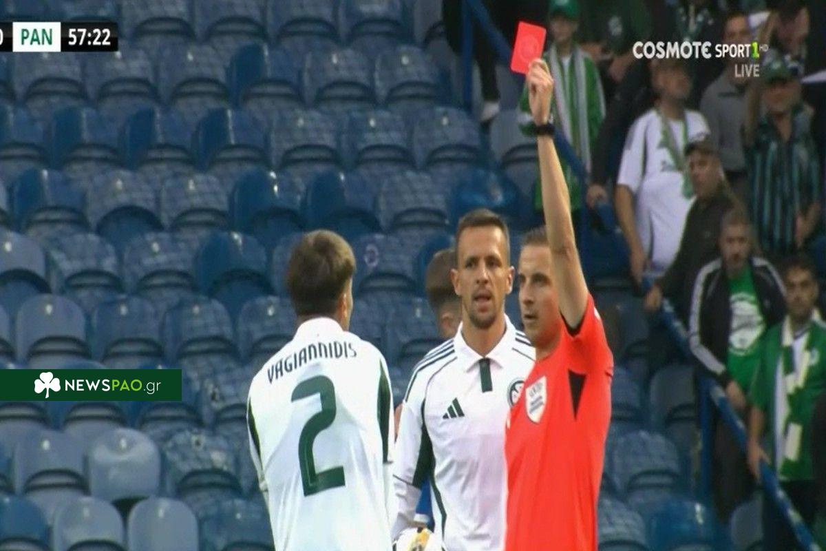 Στο 58′, ο Γιώργος Βαγιαννίδης αποβλήθηκε με δεύτερη κίτρινη κάρτα – η πρώτη είχε έρθει στο 23′ για θέατρο – αφήνοντας τον Παναθηναϊκό να παίξει το υπόλοιπο ματς με δέκα παίκτες.