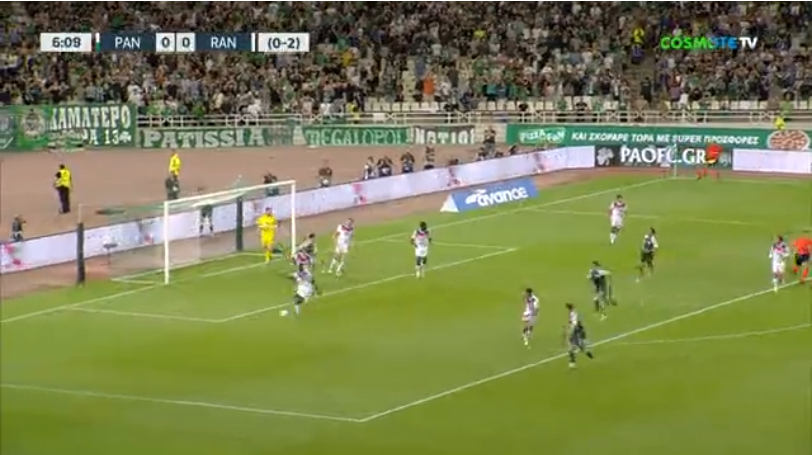 Ο Παναθηναϊκός συνεχίζει το επιθετικό του ξεκίνημα και στο 7ο λεπτό έφτασε ξανά κοντά στο γκολ. Ο Φώτης Ιωαννίδης μπήκε κάθετα στην περιοχή, δοκίμασε πλασέ από δύσκολη γωνία, όμως ο Μπάτλαντ έδιωξε με τα πόδια, κρατώντας το μηδέν για τη Ρέιντζερς.