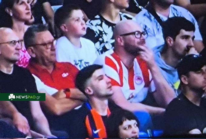 Μέσα στο πλήθος των θεατών ξεχώρισε μια ιδιαίτερη εικόνα: ένας φίλαθλος παρακολουθούσε την αναμέτρηση φορώντας φανέλα του Ολυμπιακού. Έτσι, έγινε μάρτυρας του αποκλεισμού της Σαχτάρ από τον Παναθηναϊκό, φορώντας μάλιστα τα χρώματα του «αιώνιου αντιπάλου» των «πρασίνων».