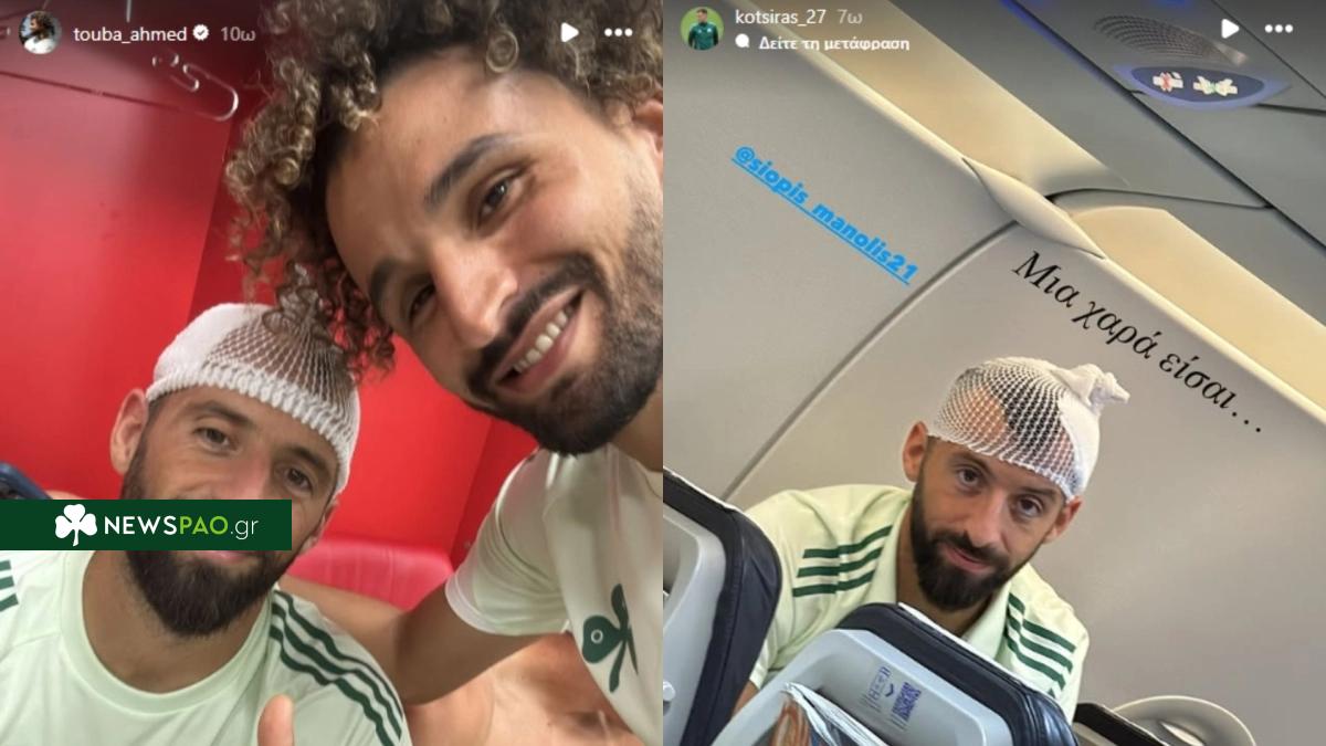 Ο Σιώπης αγωνίστηκε με γάζες και προστατευτικό δίχτυ στο κεφάλι μετά το χτύπημα, με τους συμπαίκτες του να τον πειράζουν χαμογελαστά.