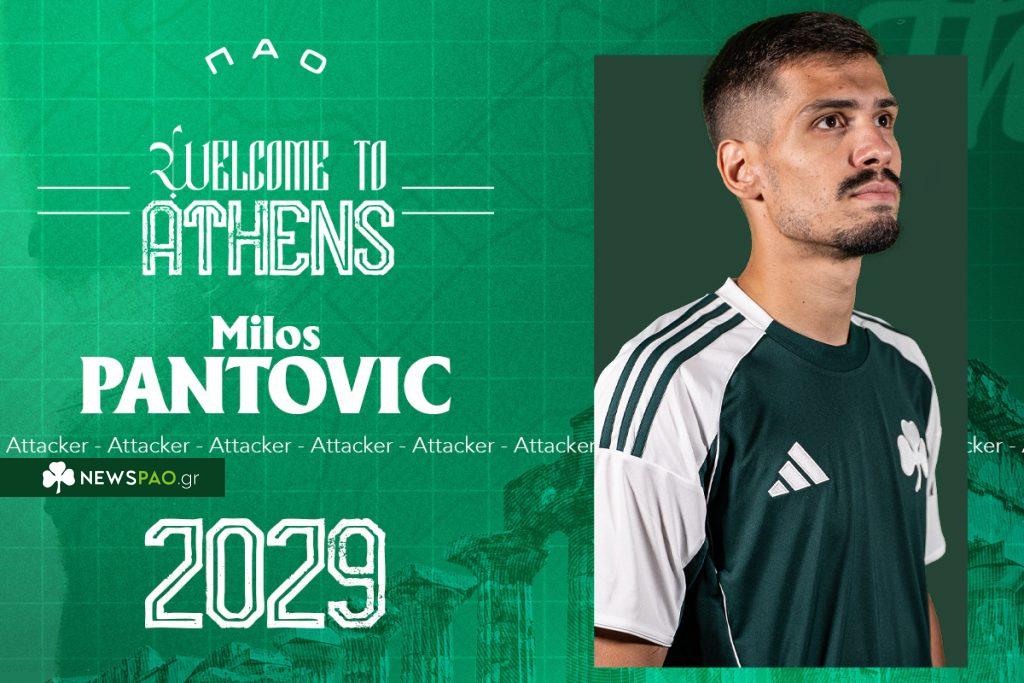 Αναλυτικά η ανακοίνωση: Η ΠΑΕ Παναθηναϊκός ανακοινώνει την απόκτηση του Μίλος Πάντοβιτς! Ο 23χρονος Σέρβος επιθετικός υπέγραψε συμβόλαιο διάρκειας τεσσάρων ετών και αποτελεί την ένατη προσθήκη στο ρόστερ της νέας αγωνιστικής περιόδου.