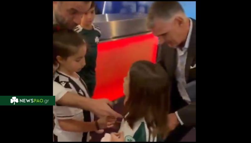 Ο Χοσέ Λουίς Μεντιλίμπαρ δέχτηκε να υπογράψει σε μια πράσινη φανέλα μιας νεαρής φιλάθλους του Παναθηναϊκού.