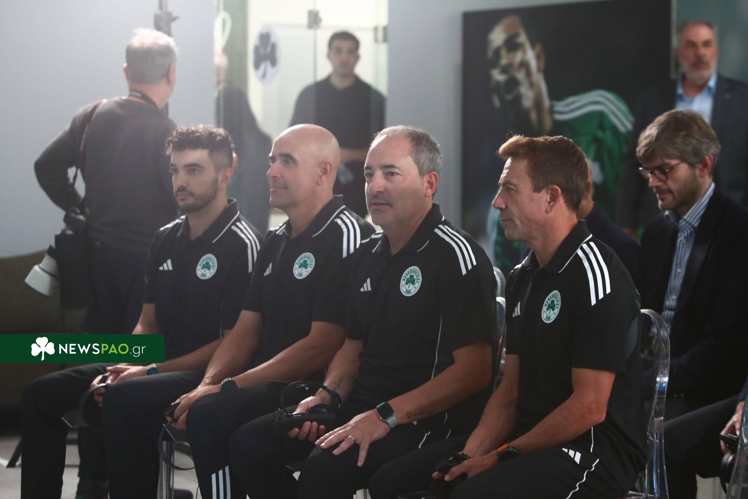 Από εκεί και πέρα στην παρουσίασή του βρέθηκαν και οι τέσσερις στενοί συνεργάτες του, οι οποίοι βρίσκονται από χθες στην Αθήνα, προκειμένου να πιάσουν δουλειά μαζί του και να μη χαθεί χρόνος μέχρι το παιχνίδι της Κυριακής που θα κάνει ντεμπούτο ο Ισπανός.