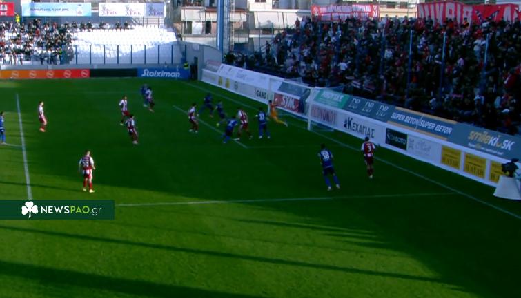 Ο Παντελίδης «νίκησε» τον Τζολάκη από το ύψος της μικρής περιοχής και ισοφάρισε σε 1-1 για την Κηφισιά στον αγώνα με τον Ολυμπιακό.
