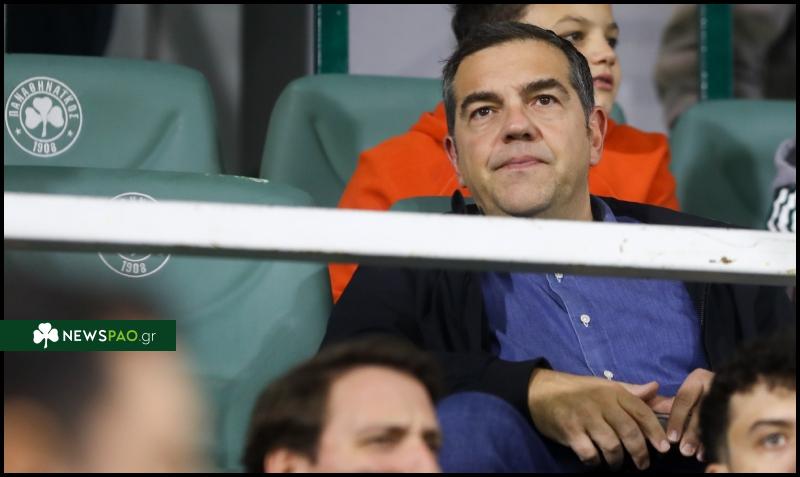 Ο Αλέξης Τσίπρας δεν έχασε την ευκαιρία να παρακολουθήσει το ντέρμπι Παναθηναϊκός-ΠΑΟΚ από τη Λεωφόρο.