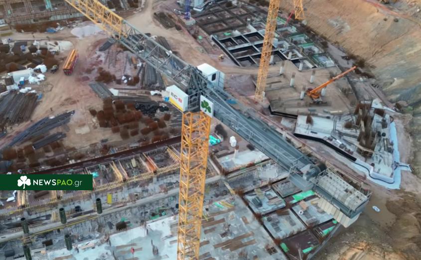 Η σκυροδέτηση στο πέταλο προχωρά, οι κερκίδες υψώνονται και εντυπωσιακό drone βίντεο δείχνει τη μεγάλη πρόοδο των έργων στο Βοτανικό.