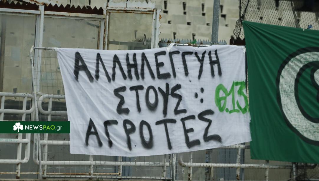 Οι οργανωμένοι οπαδοί του Παναθηναϊκού έστειλαν το ακόλουθο μήνυμα μέσω ενός πανό στο ΟΑΚΑ λίγο πριν την έναρξη της ευρωπαϊκής αναμέτρησης με τη Βικτόρια Πλζεν: «Αλληλεγγύη στους αγρότες – Θύρα 13».