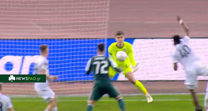 Ο επιθετικός του Παναθηναϊκού αιφνιδιάστηκε, έπιασε μια κεφαλιά και δίχως να δώσει κατεύθυνση προς κάποια γωνία έκανε εύκολο το έργο του αντίπαλου γκολκίπερ από πλεονεκτική θέση.