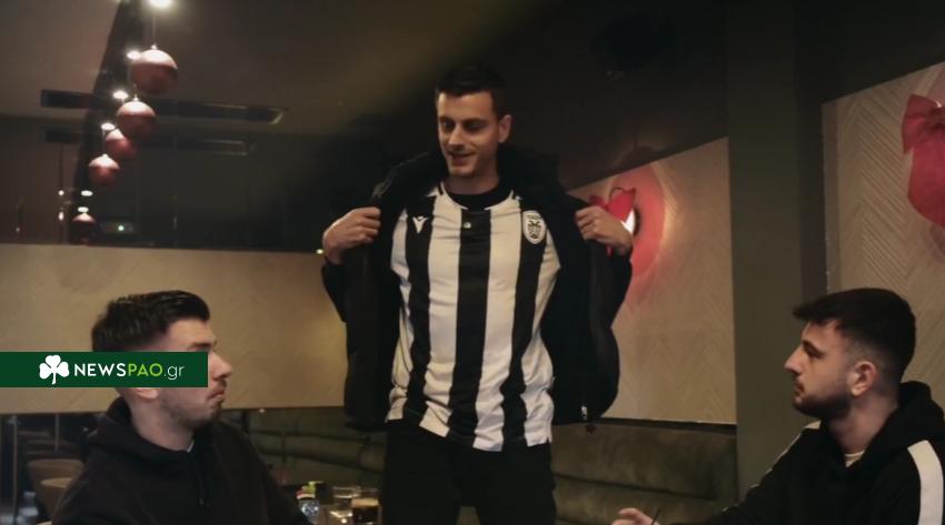 Όπως θα δείτε, ο Γερεμέγεφ κρυφάκουγε τη συνομιλία από το διπλανό τραπέζι και την κατάλληλη στιγμή, φανέρωσε τη φανέλα του ΠΑΟΚ.