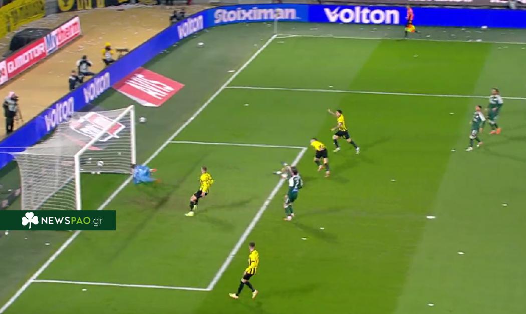 Η ΑΕΚ άνοιξε το σκορ στο 15ο λεπτό του αγώνα απέναντι στον Παναθηναϊκό, εκμεταλλευόμενη μια γρήγορη επιθετική ανάπτυξη από τα δεξιά.