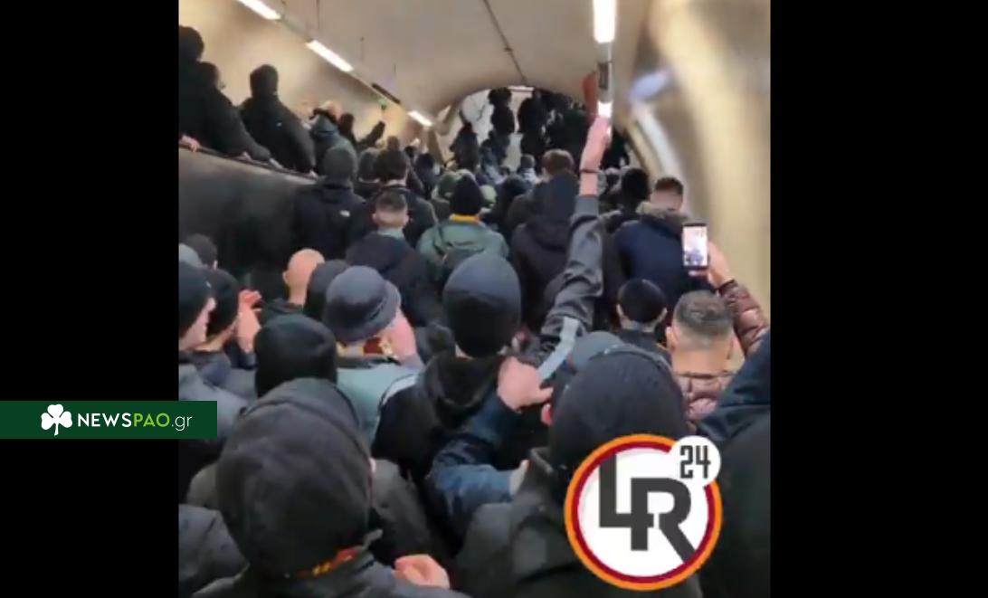Παναθηναϊκός: Πανικός στο μετρό με οπαδούς της Ρόμα - Τραγούδησαν συνθήματα και του «Τριφυλλιού» (vid)