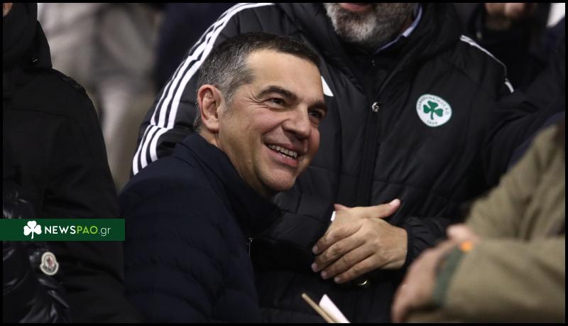 Ο Αλέξης Τσίπρας παρακολουθεί τον ημιτελικό αγώνα Παναθηναϊκός – ΠΑΟΚ στη Λεωφόρο.