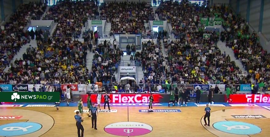 Οι οπαδοί των «πρασίνων» που έδωσαν βροντερό παρόν στο -sold out- κλειστό της Καρδίτσας έδωσαν το σύνθημα για το «διπλό» στο ντέρμπι του «Γ. Καραϊσκάκης» (21:00).