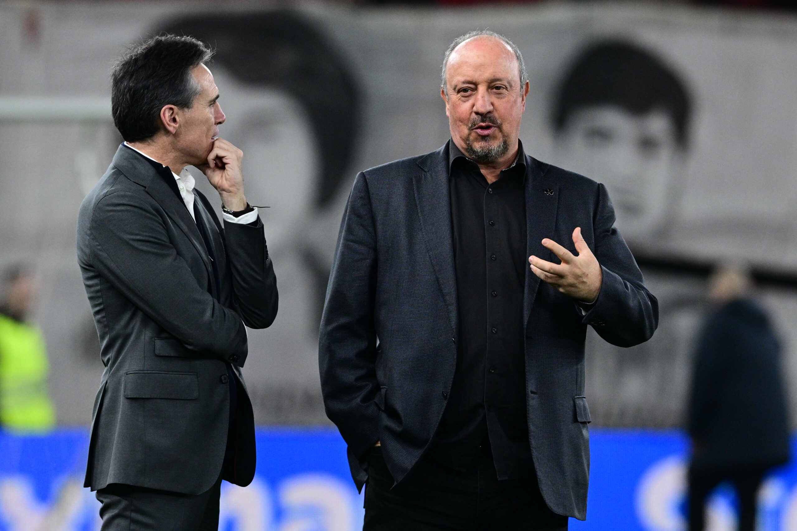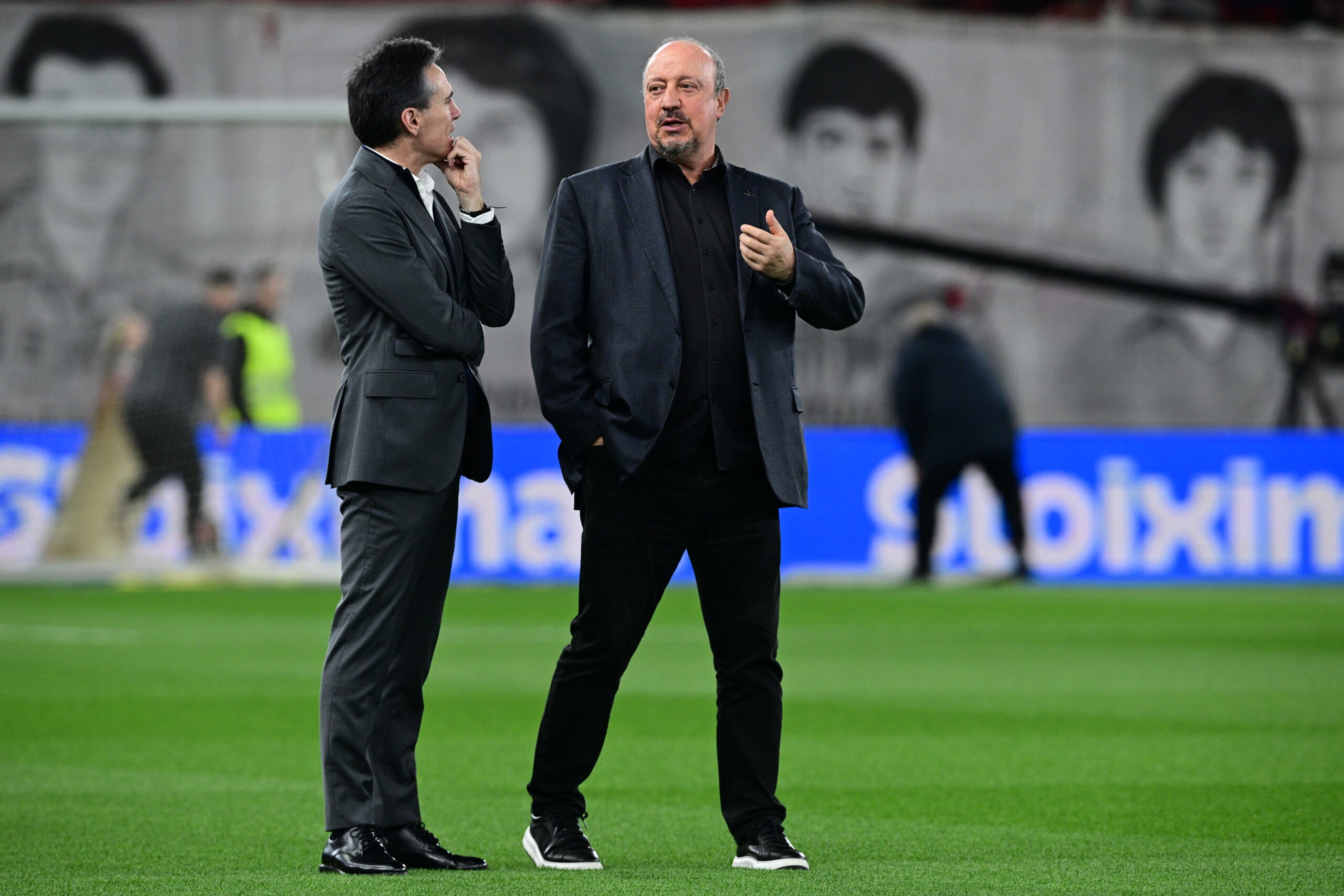 Όπως και στη Λεωφόρο, οι Ράφα Μπενίτεθ και Μιγκέλ Άνχελ Κορόνα κουβέντιασαν για μερικά λεπτά κατά την αναγνωριστική βόλτα των δύο ομάδων στο φαληρικό γήπεδο.