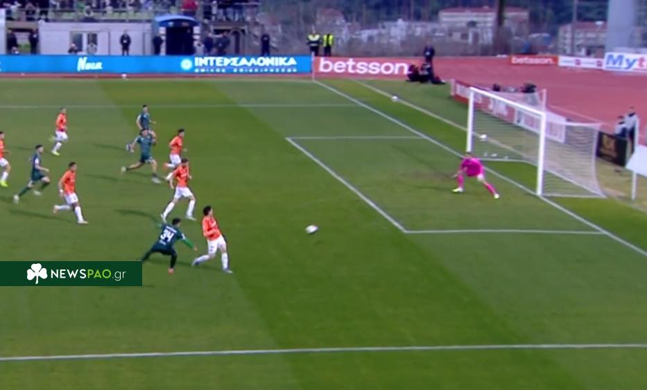 Με μια από τις γνωστές του κινήσεις ο Σεμπαστιάν Παλάσιος βρέθηκε σε θέση βολής και με διαγώνιο σουτ έστειλε τη μπάλα στο δεξί δοκάρι του Χριστογεώργου σε μια από τις τελευταίες φάσεις του α’ μέρους.