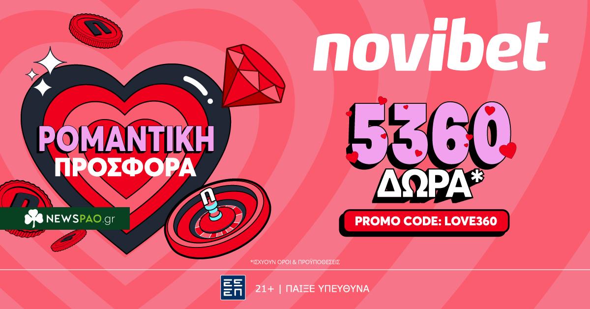 Εκτός από την απόλυτη προσφορά* LOVE360 η οποία θα είναι διαθέσιμη στην πλατφόρμα της Novibet μέχρι τις 16 Φεβρουαρίου 2026 στις 23:59, όποιος επιλέξει τη Novibet για την διασκέδασή του θα βρει 1000+ προσφερόμενες αγορές σε όλους τους αγώνες, ενώ τα μέλη του καζίνο μπορούν να βρουν μεγάλη γκάμα προσφορών*, Novibet Branded τραπέζια και κορυφαίο πρόγραμμα ανταμοιβής*.