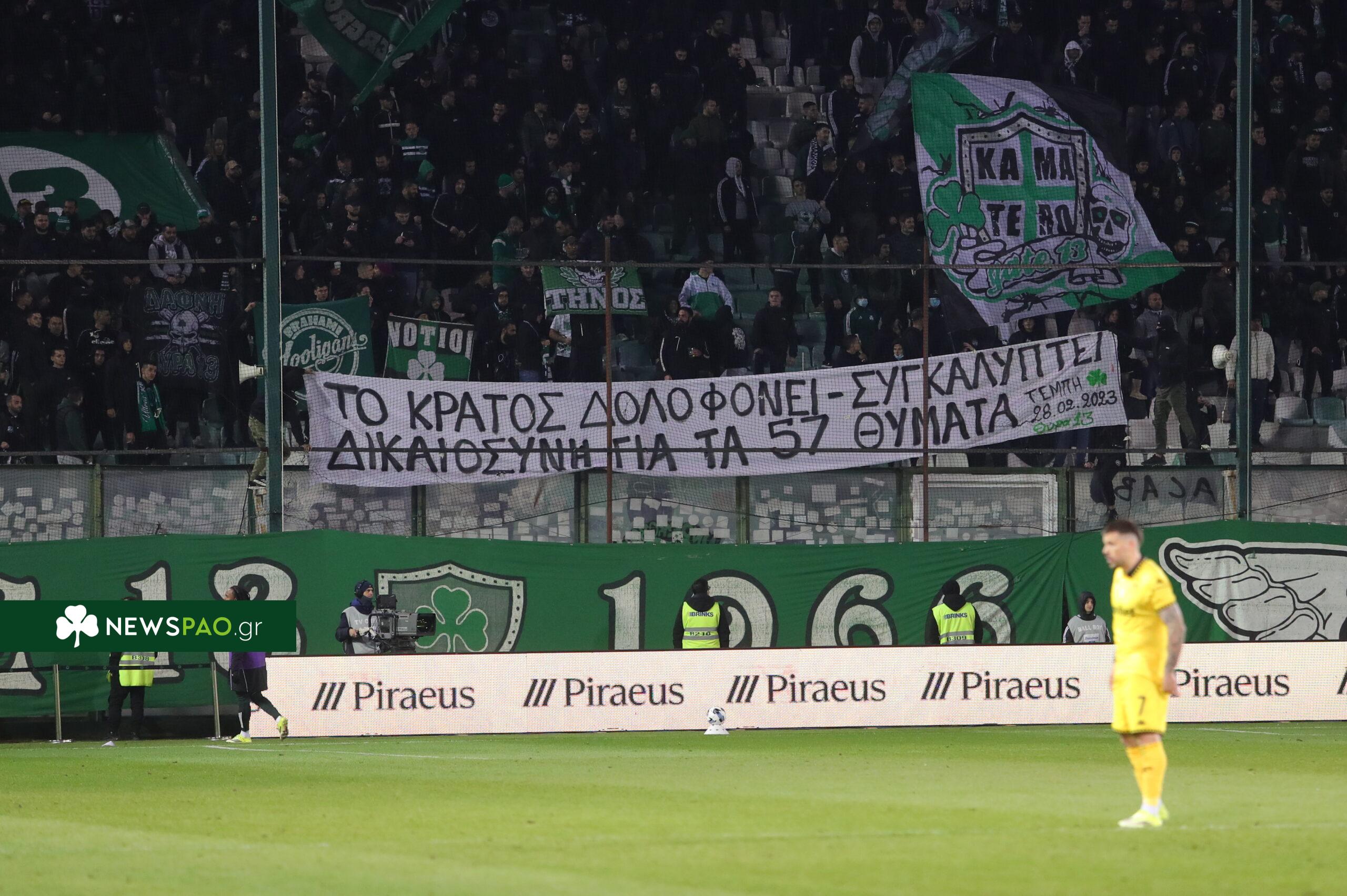 Το δικό της μήνυμα έστειλε η Θύρα 13 για το δυστύχημα των Τεμπών, στο παιχνίδι του Παναθηναϊκού με τον Άρη.