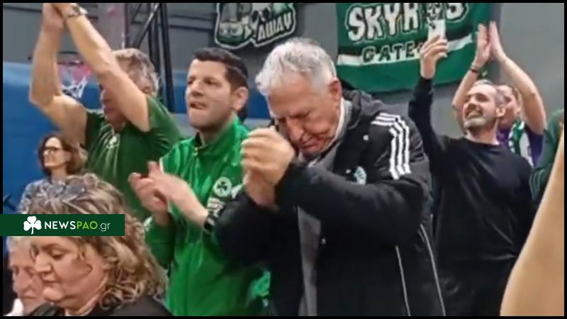 Ο παλαίμαχος ποδοσφαιριστής του Τριφυλλιού όχι μόνο εμφανίστηκε στο γήπεδο, αλλά ήταν ιδιαίτερα συμμετοχικός συμβάλλοντας στην καυτή ατμόσφαιρα των οπαδών.