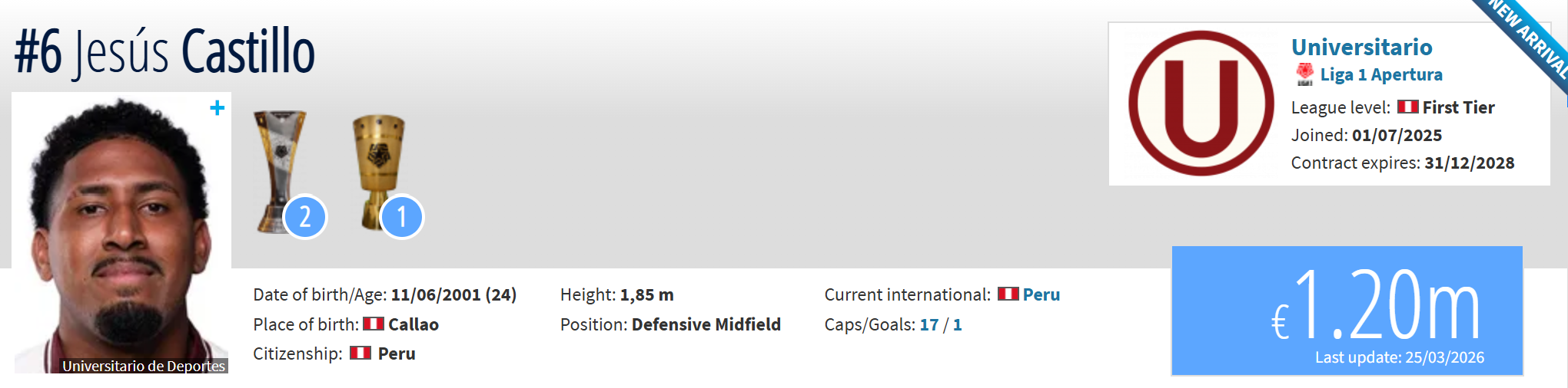 Όσον αφορά τον Καστίγιο, ο 24χρονος Περουβιανός χαφ έχει χρηματιστηριακή αξία στο 1.5 εκατ. ευρώ.