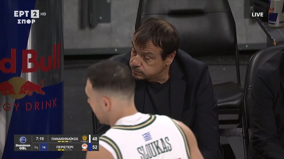 Η αντίδραση του προπονητή του Παναθηναϊκού μετά από χαμένο αμυντικό ριμπάουντ.
