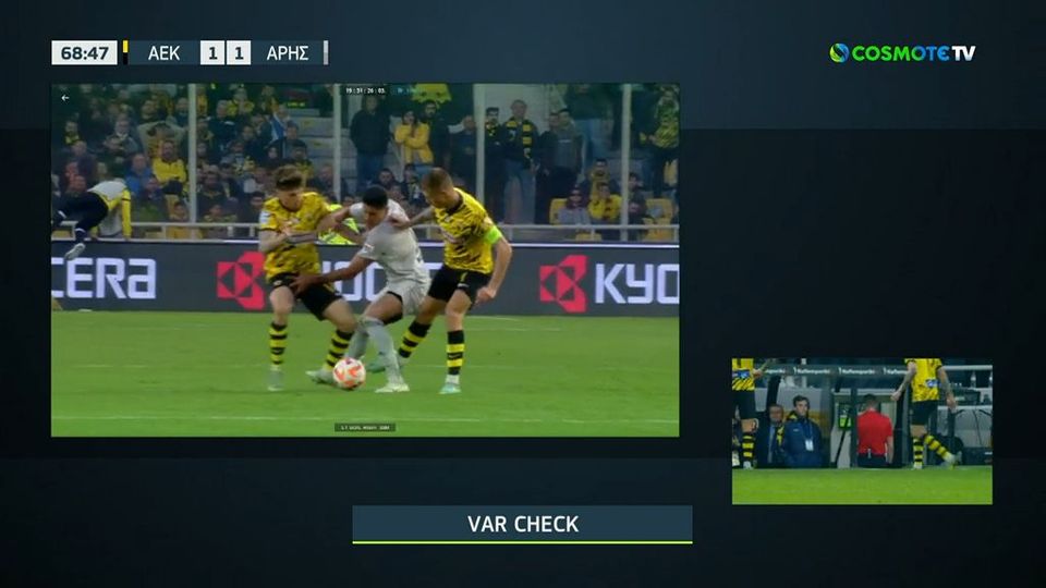 Αστείο πέναλτι δόθηκε από τον Διαμαντόπουλο στο ΑΕΚ-Άρης. Ευτυχώς το VAR είπε… Όχι!