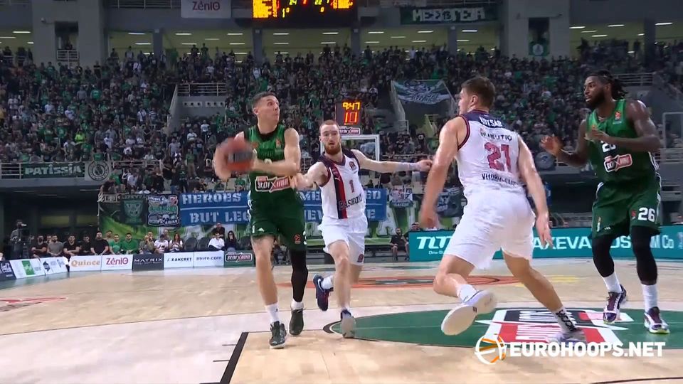 Ο Κάιλ Γκάι έδωσε πολλές βοήθειες στον Παναθηναϊκό, στη νίκη επί της Μπασκόνια στο ΟΑΚΑ.