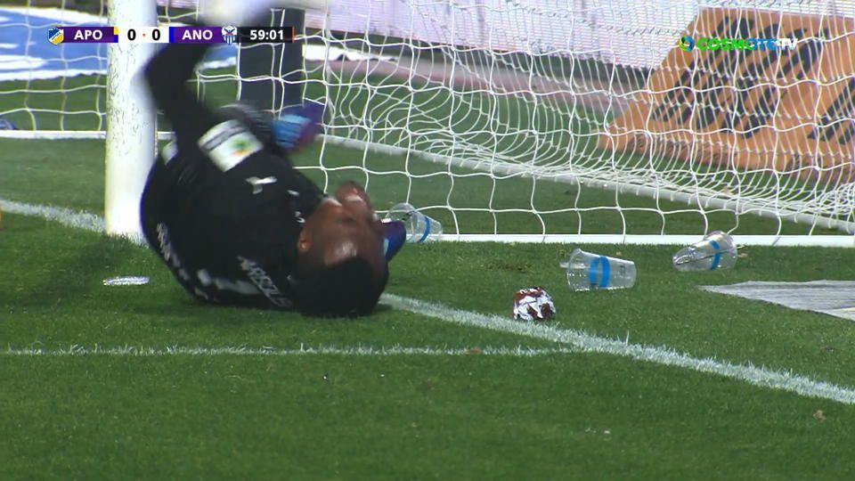 Χαμός στο ΑΠΟΕΛ – Ανόρθωση: Χτύπησε από κροτίδα ο τερματοφύλακας των φιλοξενούμενων (vid)