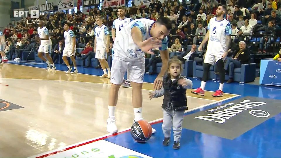 Ο αρχηγός της Team Sloukas μπήκε στο παρκέ με την κορούλα του, τη Βαλέρια, έκαναν προθέρμανση μαζί ενώ δώσανε και τα φιλιά τους σε όλους τους τηλεθεατές.