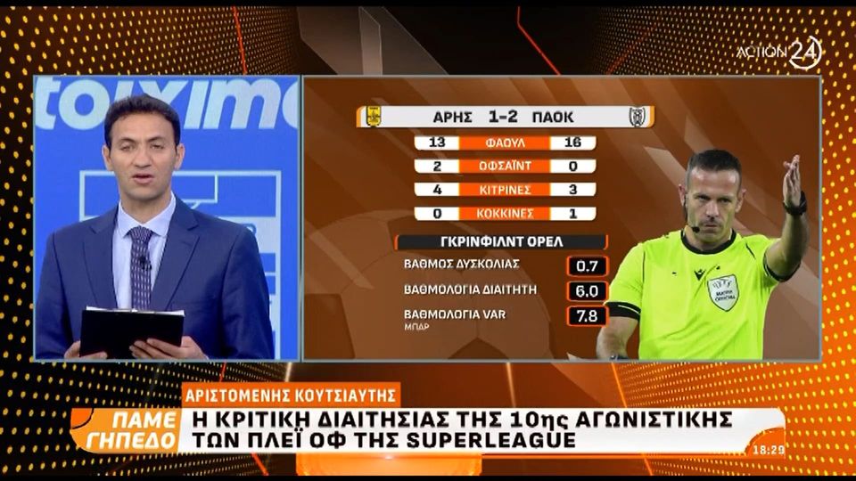 Ο Αριστομένης Κουτσιάφτης αναλύει τις επίμαχες φάσεις και δίνει την κριτική της διαιτησίας για τη 10η αγωνιστική των πλέι οφ της Superleague.