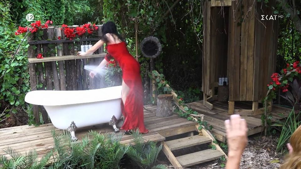 Η παίκτρια δοκίμασε να ανοίξει το νερό όμως κάτι δεν υπολόγισε σωστά και βράχηκε ολόκληρη.