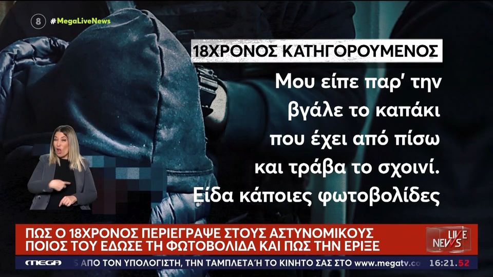 Πώς ο 18χρονος περιέγραψε στους αστυνομικούς ποιος του έδωσε τη φωτοβολίδα και πώς την έριξε (vid)