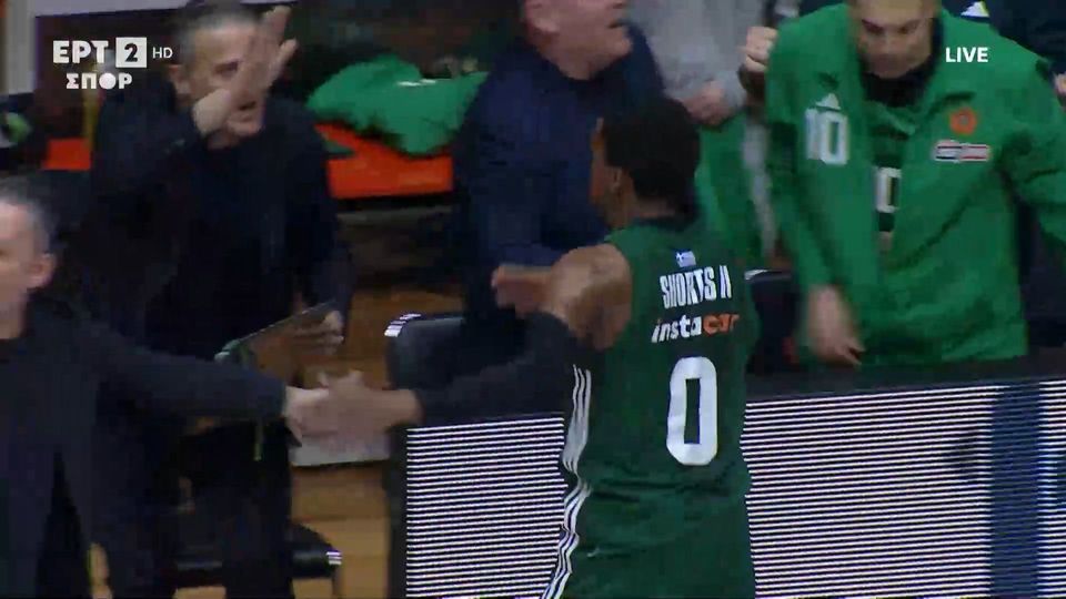 Ο Σορτς ευστοχεί για τρεις στη λήξη του 1ου δεκαλέπτου και δέχεται τα συγχαρητήρια του πάγκου.