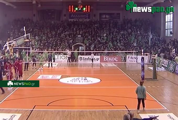 Διακοπή στο Μαρούσι στον αγώνα βόλεϊ Παναθηναϊκός-Ολυμπιακός, καθώς η ΕΛ.ΑΣ έκανε χρήση δακρυγόνων που πέρασαν μέσα στο κλειστό.