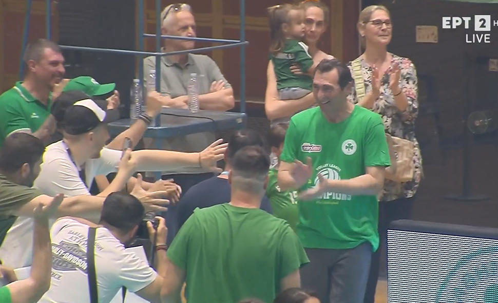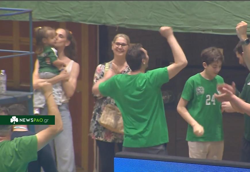 Μετά το τέλος του τελικού, ο προπονητής του Παναθηναϊκού, Δημήτρης Ανδρεόπουλος, φορώντας το μπλουζάκι του πρωταθλητή, γύρισε προς τον κόσμο και πανηγύρισε μαζί του!